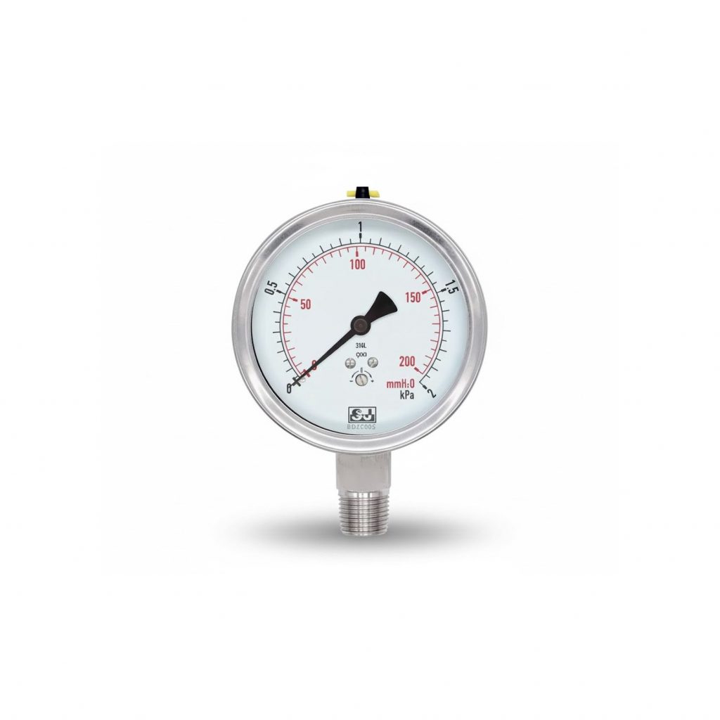 - Manómetro de baja presión con caja de acero inoxidable