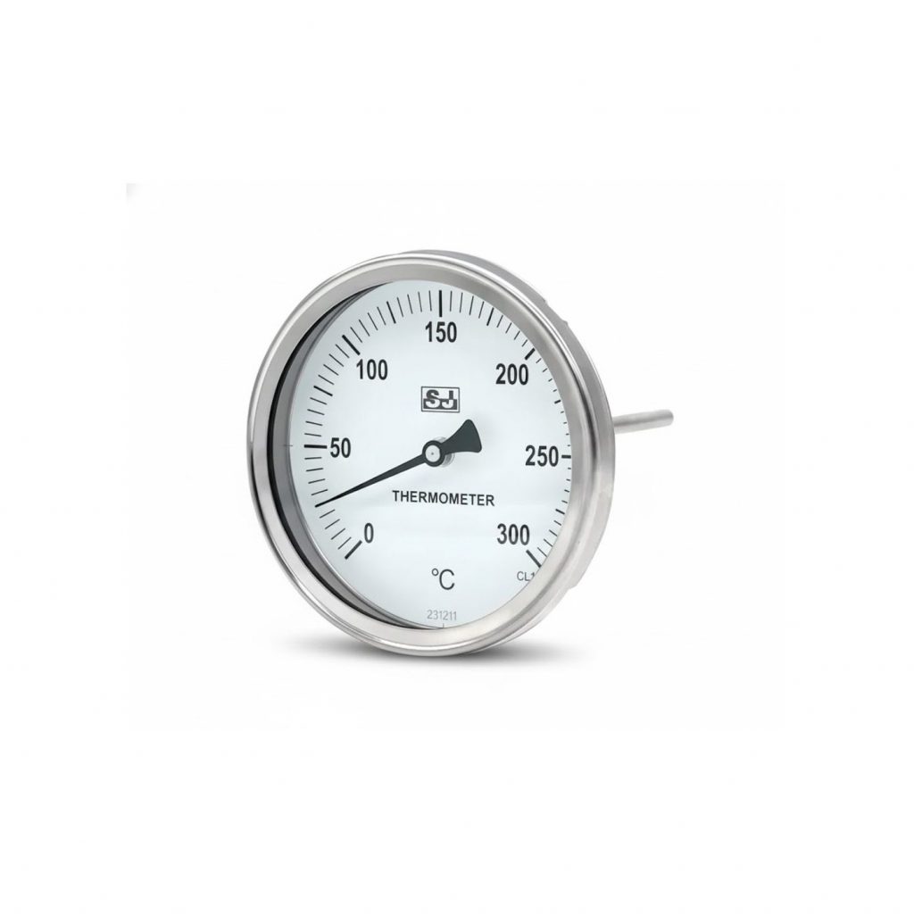 Esta expansión diferencial hace que la tira se doble, impulsando una aguja que indica la temperatura. Conocidos por su estructura simple y fiable, los termómetros bimetálicos se utilizan comúnmente para lecturas inmediatas de temperatura en rangos de temperaturas bajas a medias. No requieren una fuente de alimentación externa, lo que los hace adecuados para equipos mecánicos y aplicaciones industriales generales.